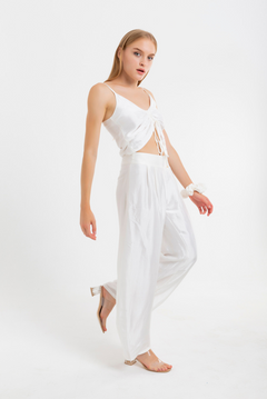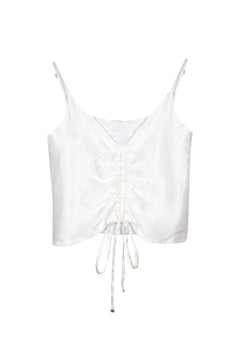 Bağcıkları serbest bıraktığınızda dökümlü ve sade bir görünüm elde edersiniz. Bağcıkları sıktığınızda ise bluz, heykelsi bir form kazanarak kelebek siluetine dönüşür.