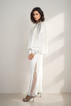 Çift Yırtmaçlı Dantelli İpek Pantolon