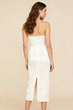 İnce askılı yapısı ve zarif yaka detayı, minimal bir duruşla etkileyici bir görünüm yaratır. Hafif kumaşı sayesinde tenle uyum içinde hareket eder.
