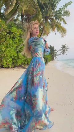 Maldiv Mavisi Elbise, hafif ve nefes alabilen özel kumaşıyla tasarlanmış, ve yalnızca 2 adet üretilen sınırlı sayıda bir tasarımdır. Maldivler’in huzur veren turkuaz denizlerinden ilham alınarak tasarlanan bu elbise, zarif ve akıcı siluetiyle doğal bir şıklık sunar.