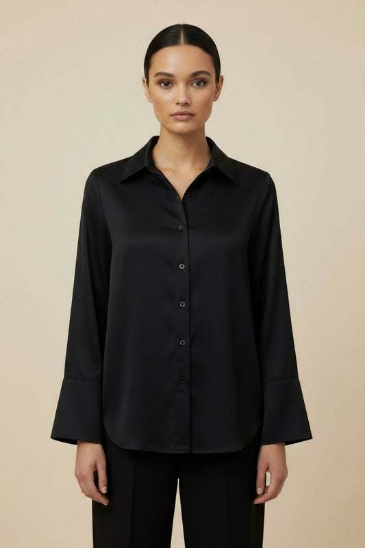 Noir Saten Bluz, zarif görünmek isteyenlerin dolabında olması gereken, klasik ama modern bir seçenektir.