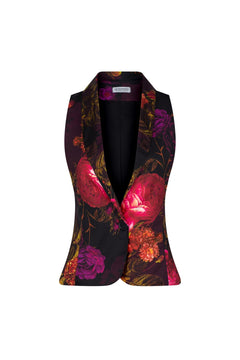 V yaka kesimi ve tek düğmeli kapamasıyla Nostaljik Çiçek Saten V Yaka Yelek, modern ve feminen bir siluet sunar.