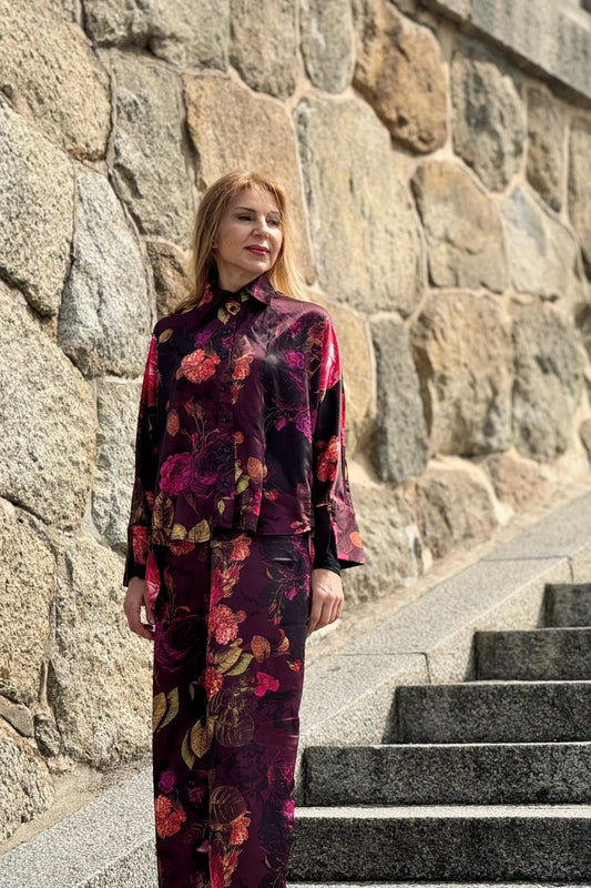Nostaljik Çiçekli Saten Bluz, zamansız bir zarafeti modern feminen dokunuşlarla buluşturuyor. Akışkan yapıya sahip saten kumaştan üretilen ve ressam dokunuşlarını andıran canlı çiçek desenleriyle tasarlanan bu bluz, vücuda yumuşakça oturarak hem konfor hem de şıklık sunar.