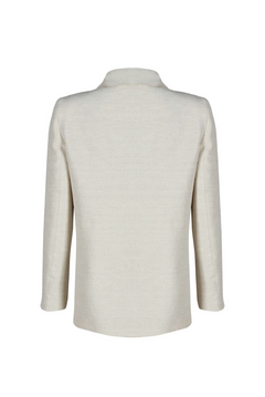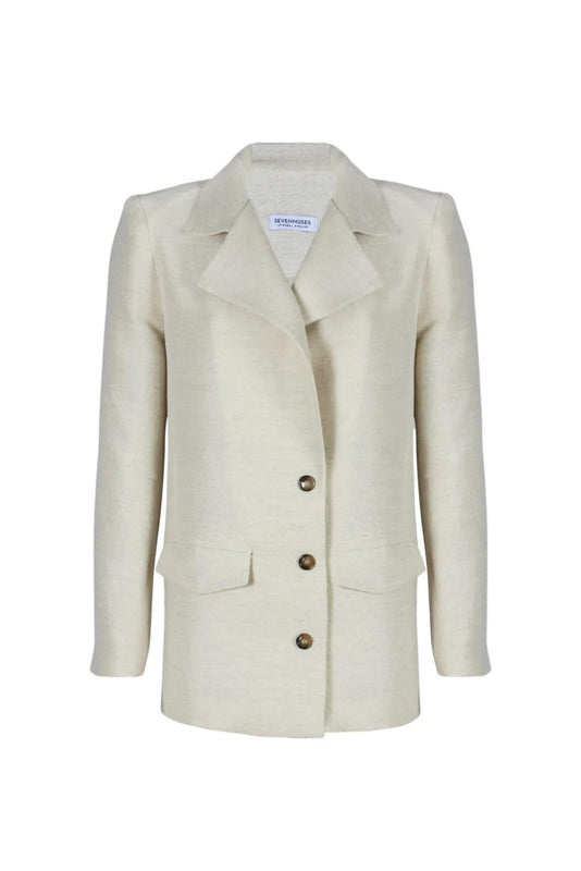 %40 saf ipek, %30 organik yün ve %30 keten karışımı özel bir kumaşımızdan üretilen Saf Yün ve İpek Ceket; yünün doğal ısı tutma özelliği ile ipeğin pürüzsüz yumuşaklığını buluşturuyor. Gerçek manda boynuzu düğmeleriyle tamamlanındı.