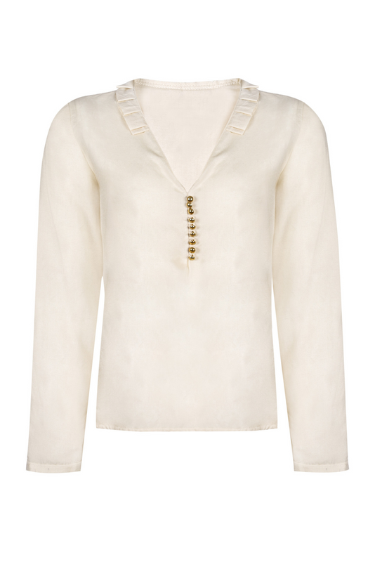 Nefes alan ve hafif yapısıyla gün boyu rahatlık sunarken, ipeğin doğal parlaklığı bluzunuza sofistike bir dokunuş katar. Her tasarım, %100 doğal materyallerle ve tamamen el işçiliğiyle hazırlanır.